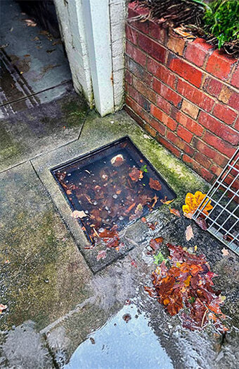 Effective unblocking of surface drains, channel grates, and strip drains filled with leaves, mud, or garden waste to prevent pooling water.